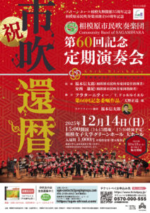 日時:2025年12月14日(日) 14:15開場 15:00開演 17:30終演予定場所: 相模女子大学グリーンホール 大ホール指揮:福本信太郎 (相模原市民吹奏楽団常任指揮者)、安西雄紀(相模原市民吹奏楽団指揮者)サクソフォーン独奏:福本信太郎 入場・・・ 詳しくはこちら